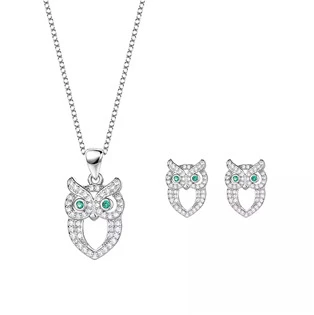 Stříbrná souprava šperků se skládá z náušnic a přívěšku dekorovaných zirkony