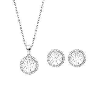 Stříbrná souprava šperků se skládá z náušnic a náhrdelníku s motivem strom života