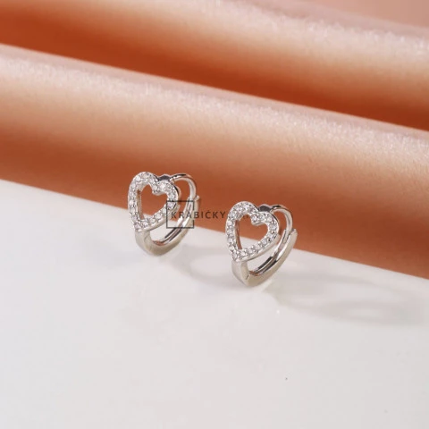 Nádherné náušničky kroužky se srdíčkem zdobené bílými kamínky