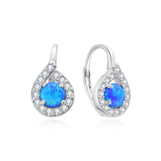 Dámské náušnice dekorované symtetickými modrými opály a zirkony. Náušnice jsou vyrobeny ze stříbra s jakostním označením 925/1000 povrchově upravené rhodiováním