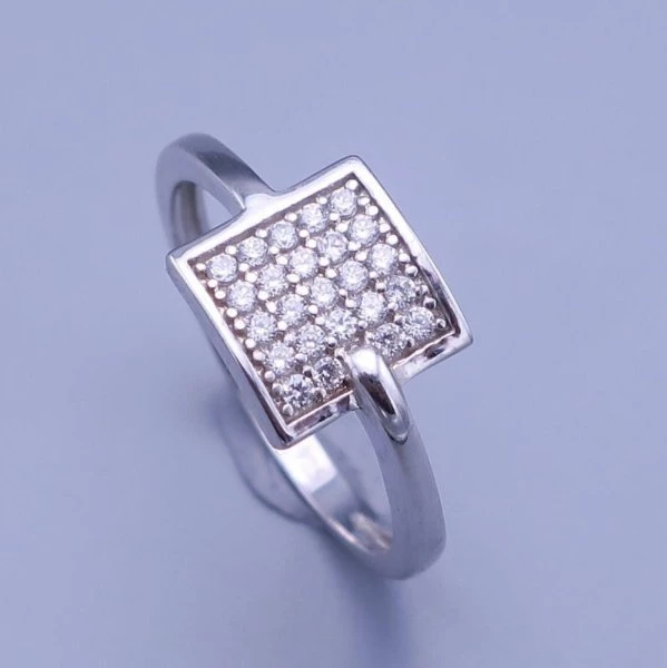 Stříbrný 925 prstýnek čtvereček se zirkony vel. 52
