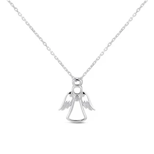Stříbrný náhrdelník s přívěškem ve tvaru andílka dekorovaného kubickými zirkony čiré barvy