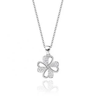 Stříbrný náhrdelník s přívěškem ve tvaru čtyřlístku dekorovaného kubickými zirkony čiré barvy