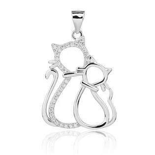 Stříbrný přívěsek v podobě sedících kočiček dekorovaných zirkony čiré barvy