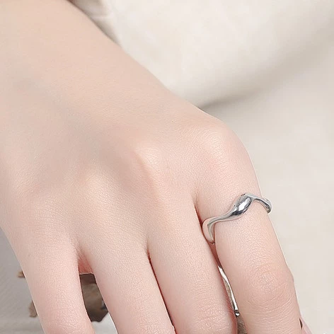 Nepravidelný stříbrný prsten vlnitého vzhledu - univerzální velikost