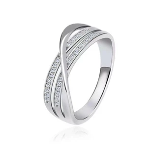 Stříbrný prsten po svém obvodu zdobený zirkony čiré barvy