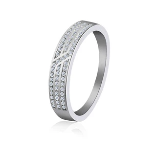 Stříbrný prsten po svém obvodu zdobený zirkony čiré barvy