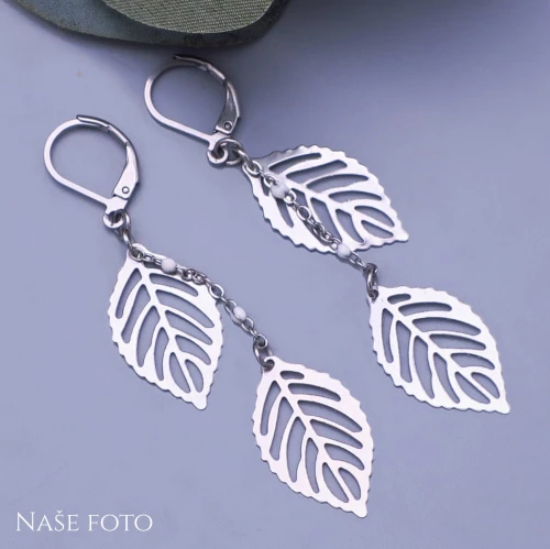 Krásné visací náušnice z chirurgické oceli zdobené lístečky.
