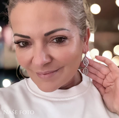 Náušnice jsou vytvořené z lístečků o velikosti 23x14mm a řetízku o šířce 1mm.