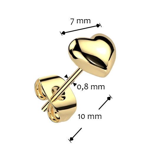 Zlacené ocelové puzetové náušnice ve tvaru vypouklých srdíček