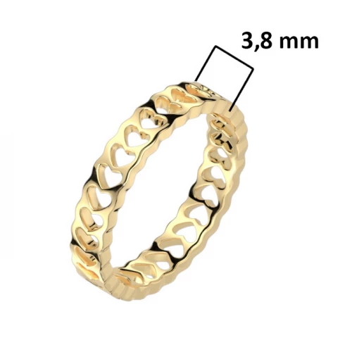 Ocelový prsten z chirurgické oceli. Prsten je po celém svém obvodu dekorovám otvory ve tvaru srdíček