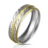 Prsten z chirurgické oceli s decentním vroubkováním a zlacením Prsten je na okraji zdoben zlacením Ocelový prsten je vyroben z chirurgické oceli s jakostním označením 316L povrchová úprava lesklá, žluté zlato šíře prstenu 6mm Ocelový prsten šíře 6 mm Vyberte variantu: 50 52 55 57 60 62 65 68 70