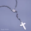 Pánský růženec z chirurgické oceli s kuličkami - kříž, madonka. Řetízek má délku 66cm, na madonce je zavěšen řetízek s křížkem o délce 13,5cm. Růženec je vyroben z chirurgické oceli, která je vhodným materiálem pro výrobu šperků díky svým vlastnostem jako je pevnost, odolnosti proti poškrábání a namáčení. Je vhodná také pro osoby s alergiemi na běžné kovy.